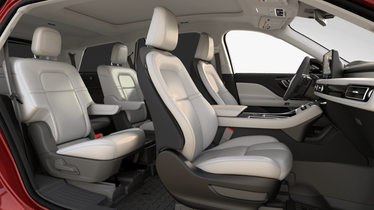 10 Speakers, 3rd row seats: split-bench, 4-Wheel Disc Brakes, ABS brakes, Adaptive suspension, Advanced Heads-Up Display, Air Conditioning, All-Weather 1st & 2nd Row Floor Liners (16A), Alloy wheels, AM/FM radio: SiriusXM, Apple CarPlay/Android Auto, Audio memory, Auto Air Refresh, Auto High-beam Headlights, Auto-dimming door mirrors, Auto-dimming Rear-View mirror, Automatic temperature control, Black Exterior Elements, Body-Color Exterior Elements, Brake assist, Bumpers: body-color, Cargo Area Cover, Compass, Delay-off headlights, Driver door bin, Driver vanity mirror, Dual front impact airbags, Dual front side impact airbags, Electronic Stability Control, Emergency communication system: 911 Assist, Equipment Group 101A, Four wheel independent suspension, Front anti-roll bar, Front Bucket Seats, Front Center Armrest, Front dual zone A/C, Front reading lights, Fully automatic headlights, Garage door transmitter, Heated 2nd Row Seats, Heated door mirrors, Heated front seats, Heated steering wheel, HVAC memory, Illuminated entry, Jet Appearance Package, Knee airbag, Leather steering wheel, Lincoln BlueCruise Equipped (4-Years Included), Lincoln Digital Experience, Lincoln Soft Touch Heated/Ventilated Comfort Seats, Low tire pressure warning, Memory seat, Navigation system: Connected Navigation (1-year trial), Occupant sensing airbag, Outside temperature display, Overhead airbag, Overhead console, Panic alarm, Passenger door bin, Passenger vanity mirror, Power door mirrors, Power driver seat, Power Liftgate, Power moonroof: Panoramic Vista Roof, Power passenger seat, Power steering, Power windows, Radio data system, Radio: Lincoln Premium AM/FM/HD Audio System, Radio: Revel Audio System w/14 Speakers, Rain sensing wipers, Rear air conditioning, Rear anti-roll bar, Rear audio controls, Rear reading lights, Rear window defroster, Rear window wiper, Remote keyless entry, Security system, SiriusXM, Speed control, Speed-Sensitive Wipers, Split folding rear seat, Spoiler, Steering wheel memory, Steering wheel mounted A/C controls, Steering wheel mounted audio controls, Tachometer, Telescoping steering wheel, Tilt steering wheel, Traction control, Trip computer, Turn signal indicator mirrors, Variably intermittent wipers, Ventilated front seats, Wheels: 20 Magnetic Bright-Machined Aluminum, Wheels: 21 Bright-Machined Aluminum, Wireless Charging.