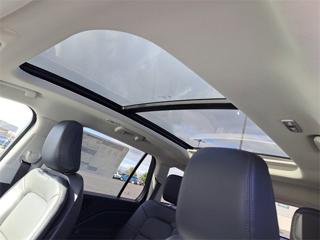 10 Speakers, 3rd row seats: split-bench, 4-Wheel Disc Brakes, ABS brakes, Adaptive suspension, Air Conditioning, All-Weather 1st and 2nd Row Floor Liners, Alloy wheels, AM/FM radio: SiriusXM, Apple CarPlay/Android Auto, Audio memory, Auto Air Refresh, Auto High-beam Headlights, Auto-dimming door mirrors, Auto-dimming Rear-View mirror, Automatic temperature control, Black Exterior Elements, Body-Color Exterior Elements, Brake assist, Bumpers: body-color, Compass, Delay-off headlights, Driver door bin, Driver vanity mirror, Dual front impact airbags, Dual front side impact airbags, Electronic Stability Control, Emergency communication system: 911 Assist, Equipment Group 101A Premiere II, Four wheel independent suspension, Front anti-roll bar, Front Bucket Seats, Front Center Armrest, Front dual zone A/C, Front reading lights, Fully automatic headlights, Garage door transmitter, Heads-Up Display, Heated door mirrors, Heated Front Driver and Passenger Seats, Heated front seats, Heated steering wheel, HVAC memory, Illuminated entry, Jet Appearance Package, Knee airbag, Leather steering wheel, Lincoln App, Lincoln BlueCruise Equipped (4-Years Included), Lincoln Connectivity Package (4-Years), Lincoln Digital Experience, Lincoln Soft Touch Comfort Seats, Low tire pressure warning, Memory seat, Navigation system: Google Maps, Occupant sensing airbag, Outside temperature display, Overhead airbag, Overhead console, Panic alarm, Panoramic Vista Roof with Power Shade, Passenger door bin, Passenger vanity mirror, Power door mirrors, Power driver seat, Power Liftgate, Power passenger seat, Power steering, Power Tilt Telescoping Steering Column with Memory, Power windows, Radio data system, Radio: Lincoln Premium AM/FM/HD Audio System with 10 Speakers, Rain sensing wipers, Rear air conditioning, Rear anti-roll bar, Rear audio controls, Rear reading lights, Rear window defroster, Rear window wiper, Remote keyless entry, Security system, SiriusXM, SiriusXM with 360L (4-Years Plan), Speed control, Speed-Sensitive Wipers, Split folding rear seat, Spoiler, Steering wheel mounted A/C controls, Steering wheel mounted audio controls, Tachometer, Telescoping steering wheel, Tilt steering wheel, Traction control, Trip computer, Turn signal indicator mirrors, Variably intermittent wipers, Wheels: 20 Magnetic Bright-Machined Aluminum, Wheels: 21 Bright Machined Aluminum with Dark Alloy Painted Pockets, Wireless Charging.