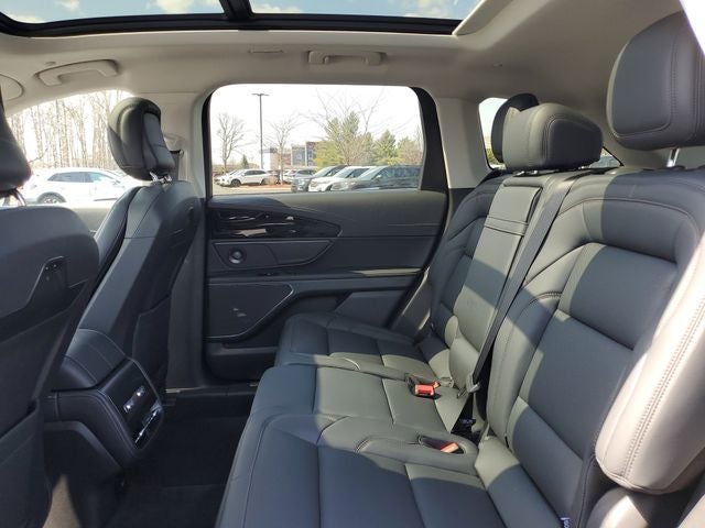 10 Speakers, 110V Power Converter, 19 Bright Machined Aluminum Wheels, 4-Wheel Disc Brakes, ABS brakes, Air Conditioning, Alloy wheels, AM/FM radio: SiriusXM with 360L, Apple CarPlay/Android Auto, Auto Air Refresh, Auto High-beam Headlights, Auto tilt-away steering wheel, Auto-dimming Rear-View mirror, Automatic temperature control, Black Exterior Elements, BlueCruise Equipped (4-Years Included), Body-Color Exterior Elements, Brake assist, Bumpers: body-color, Compass, Delay-off headlights, Digital Scent, Driver door bin, Driver vanity mirror, Dual front impact airbags, Dual front side impact airbags, Electronic Stability Control, Emergency communication system: 911 Assist, Equipment Group 102A, Exterior Parking Camera Rear, Four wheel independent suspension, Front anti-roll bar, Front Bucket Seats, Front Center Armrest w/Storage, Front dual zone A/C, Front reading lights, Fully automatic headlights, Garage door transmitter, Hands-Free Power Liftgate, Heated door mirrors, Heated front seats, Heated steering wheel, Illuminated entry, Jet Appearance Package, Knee airbag, Leather steering wheel, Lincoln App, Lincoln Connectivity Package, Lincoln Digital Experience, Lincoln Soft Touch Heated Front Captain's Chairs, Low tire pressure warning, Memory seat, Molded in Color - Lower Cladding and Wheel Arches, Navigation System, Occupant sensing airbag, Outside temperature display, Overhead airbag, Overhead console, Panic alarm, Panoramic Vista Roof with Powershade, Passenger door bin, Passenger vanity mirror, Power door mirrors, Power driver seat, Power Liftgate, Power passenger seat, Power steering, Power windows, Radio data system, Radio: AM/FM Premium Audio, Radio: AM/FM Revel Audio System, Rain sensing wipers, Rear anti-roll bar, Rear Heated Seats with Switch Control, Rear reading lights, Rear seat center armrest, Rear window defroster, Rear window wiper, Remote keyless entry, Security system, SiriusXM with 360L, Speed control, Speed-sensing steering, Speed-Sensitive Wipers, Split folding rear seat, Spoiler, Steering wheel memory, Steering wheel mounted audio controls, Tachometer, Telescoping steering wheel, Tilt steering wheel, Traction control, Trip computer, Turn signal indicator mirrors, Variably intermittent wipers, Ventilated Front Seats, Wheels: 20 Bright Machined Aluminum.