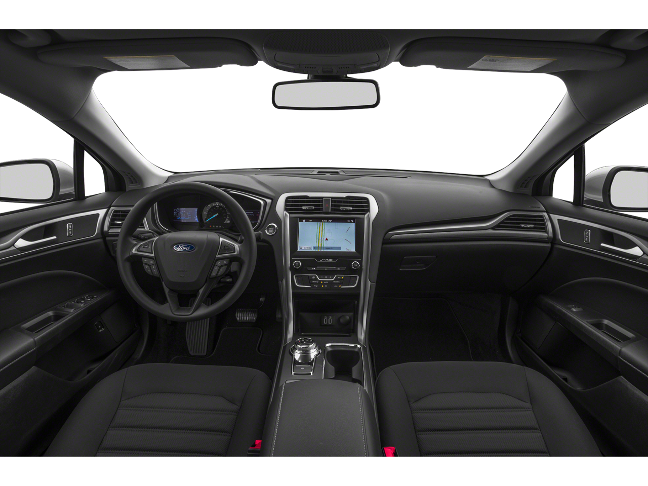 4-Wheel Disc Brakes, 9 Speakers, ABS brakes, Air Conditioning, Alloy wheels, AM/FM radio: SiriusXM, AppLink/Apple CarPlay and Android Auto, Auto High-beam Headlights, Auto-dimming Rear-View mirror, Automatic temperature control, Brake assist, Bumpers: body-color, Cloth Front Bucket Seats, Compass, Delay-off headlights, Driver door bin, Driver vanity mirror, Dual front impact airbags, Dual front side impact airbags, Electronic Stability Control, Emergency communication system: 911 Assist, Equipment Group 550A, Exterior Parking Camera Rear, Four wheel independent suspension, Front anti-roll bar, Front Bucket Seats, Front Center Armrest, Front dual zone A/C, Front reading lights, Fully automatic headlights, Illuminated entry, Knee airbag, Lane Departure Warning System, Low tire pressure warning, Navigation System, Occupant sensing airbag, Outside temperature display, Overhead airbag, Overhead console, Panic alarm, Passenger door bin, Passenger vanity mirror, Power door mirrors, Power driver seat, Power passenger seat, Power steering, Power windows, Radio data system, Radio: AM/FM/MP3 Stereo, Rain sensing wipers, Rear anti-roll bar, Rear Parking Sensors, Rear reading lights, Rear seat center armrest, Rear window defroster, Remote keyless entry, Security system, Speed control, Speed-sensing steering, Speed-Sensitive Wipers, Split folding rear seat, Steering wheel mounted audio controls, SYNC 3 Communications & Entertainment System, Tachometer, Telescoping steering wheel, Tilt steering wheel, Traction control, Trip computer, Variably intermittent wipers, Wheels: 17 Sparkle Silver-Painted Aluminum.