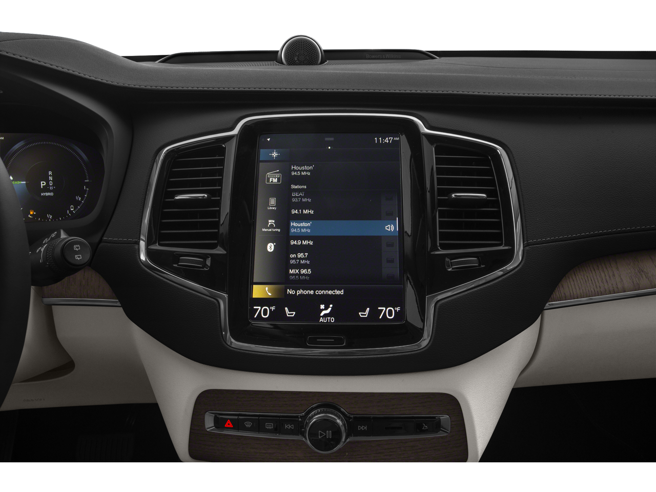 14 Speakers, 3rd row seats: bucket, 4-Wheel Disc Brakes, ABS brakes, Air Conditioning, Alloy wheels, AM/FM radio: SiriusXM, Anti-whiplash front head restraints, Apple CarPlay/Android Auto, Auto High-beam Headlights, Auto-dimming door mirrors, Auto-dimming Rear-View mirror, Automatic temperature control, Bodyside moldings, Brake assist, Bumpers: body-color, Delay-off headlights, Driver door bin, Driver vanity mirror, Dual front impact airbags, Dual front side impact airbags, Electronic Stability Control, Emergency communication system: Volvo On-Call w/4 year subscription, Exterior Parking Camera Rear, Four wheel independent suspension, Front anti-roll bar, Front Bucket Seats, Front Center Armrest w/Storage, Front dual zone A/C, Front Heated & Ventilated Bucket Seats, Front reading lights, Fully automatic headlights, Garage door transmitter: HomeLink, Genuine wood dashboard insert, Genuine wood door panel insert, harman/kardon® Speakers, Headlight cleaning, Heated door mirrors, Heated front seats, Illuminated entry, Knee airbag, Low tire pressure warning, Memory seat, Navigation system: Sensus Navigation, Occupant sensing airbag, Outside temperature display, Overhead airbag, Panic alarm, Passenger door bin, Passenger vanity mirror, Perforated Nappa Leather Upholstery, Power door mirrors, Power driver seat, Power Liftgate, Power moonroof, Power passenger seat, Power steering, Power windows, Premium audio system: Sensus Connect, Radio data system, Radio: harman/kardon Premium Sound w/Sensus Nav, Rain sensing wipers, Rear air conditioning, Rear anti-roll bar, Rear dual zone A/C, Rear fog lights, Rear reading lights, Rear seat center armrest, Rear window defroster, Rear window wiper, Remote keyless entry, Roof rack: rails only, Security system, Speed control, Speed-sensing steering, Split folding rear seat, Spoiler, Steering wheel mounted audio controls, Tachometer, Telescoping steering wheel, Tilt steering wheel, Traction control, Trip computer, Turn signal indicator mirrors, Variably intermittent wipers, Ventilated front seats, Wheels: 20 10-Spoke Black Diamond Cut Alloy.