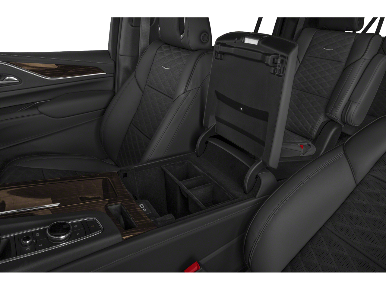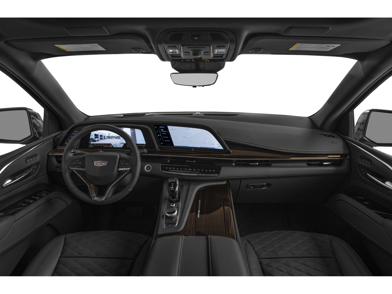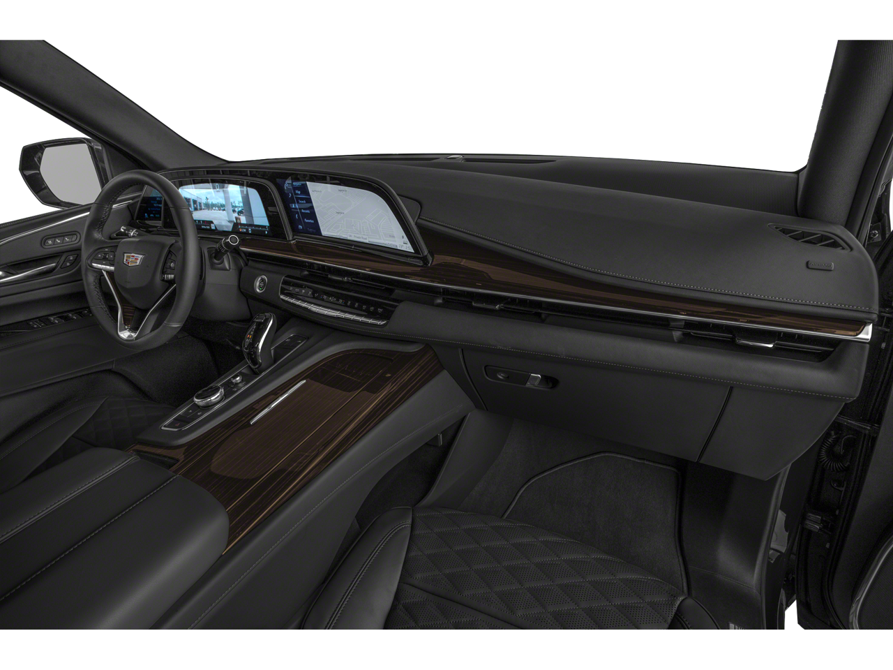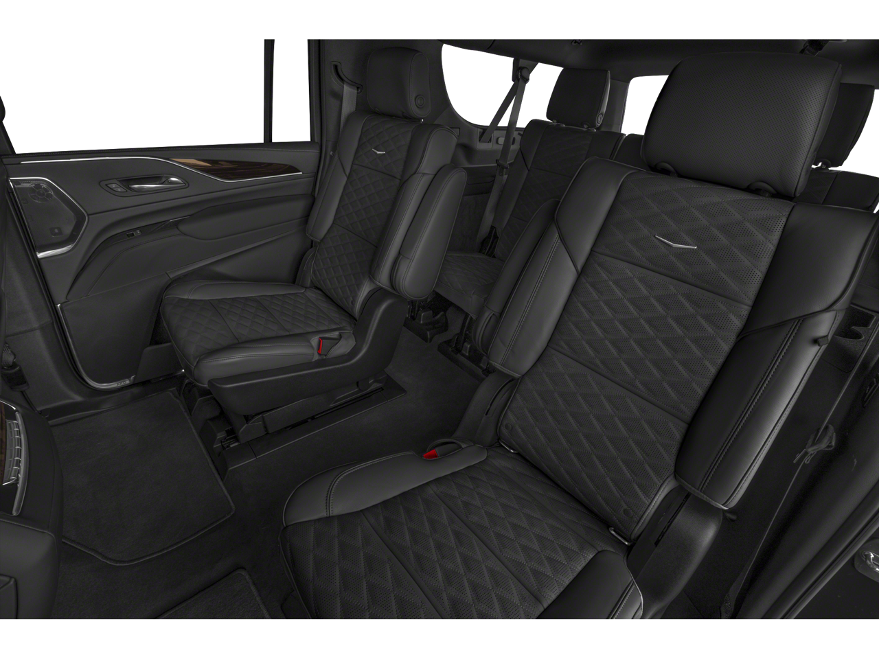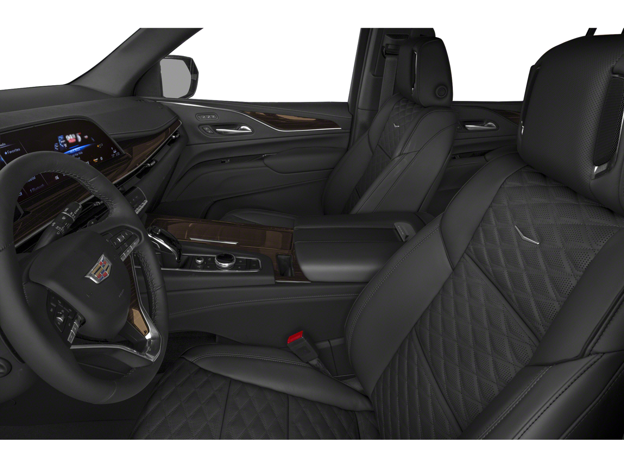 16.9 Diagonal OLED Infotainment Screen, 19 Speakers, 2-Presets Memory For Driver Seat Adjuster, 3.23 Axle Ratio, 3rd row seats: split-bench, 4-Wheel Disc Brakes, 8-Way Power Driver Seat Adjuster, 8-Way Power Front Passenger Seat Adjuster, ABS brakes, Adaptive Cruise Control, Air Conditioning, AKG Studio 19-Speaker Audio System, All-Weather Floor Liner Package (LPO), All-Weather Integrated Cargo Liner (LPO), Alloy wheels, AM/FM radio: SiriusXM with 360L, Apple CarPlay/Android Auto, Audio memory, Auto High-beam Headlights, Auto tilt-away steering wheel, Auto-dimming door mirrors, Automatic Seat Belt Tightening, Automatic Stop/Start, Automatic temperature control, Brake assist, Bumpers: body-color, Compass, Delay-off headlights, Door Lock & Latch Shields, Driver door bin, Driver vanity mirror, Dual front impact airbags, Dual front side impact airbags, Electronic Stability Control, Emergency communication system: OnStar and Cadillac connected services capable, Enhanced Automatic Emergency Braking, Enhanced Automatic Parking Assist, Floor Liner Package (LPO), Four wheel independent suspension, Front anti-roll bar, Front Bucket Seats, Front Center Armrest w/Storage, Front dual zone A/C, Front reading lights, Fully automatic headlights, Garage door transmitter, Glass Breakage Sensor, HD Radio, Heads-Up Display, Heated & Ventilated Driver & Front Passenger Seats, Heated door mirrors, Heated Driver & Front Passenger Seats, Heated front seats, Heated rear seats, Heated steering wheel, Illuminated entry, Lane Change Alert w/Side Blind Zone Alert, Leather Seating Surfaces w/Mini-Chevron Perf Inserts, Leather steering wheel, Low tire pressure warning, Mechanical Limited-Slip Differential, Memory seat, Navigation System, Not Equipped w/4-Way Driver & Fr Pass Pwr Lumbar, Not Equipped w/Steering Column Lock, Occupant sensing airbag, Outside temperature display, Overhead airbag, Overhead console, Panic alarm, Passenger door bin, Passenger vanity mirror, Power door mirrors, Power driver seat, Power Liftgate, Power moonroof, Power Panoramic Tilt-Sliding Sunroof, Power passenger seat, Power steering, Power windows, Preferred Equipment Group 1SB, Premium Smooth Ride Suspension, Radio data system, Radio: AM/FM/SiriusXM w/Navigation, Rain sensing wipers, Rear air conditioning, Rear anti-roll bar, Rear Camera Mirror, Rear Camera Mirror Washer, Rear Cross Traffic Alert, Rear reading lights, Rear window defroster, Rear window wiper, Reconfigurable Full-Color Head-Up Display, Remote keyless entry, Reverse Automatic Braking, Roof rack: rails only, Running Board Assist Steps, Security system, SiriusXM w/360L, Speed control, Split folding rear seat, Spoiler, Start/Stop System Disable Button, Steering wheel memory, Steering wheel mounted audio controls, Super Cruise, Tachometer, Teen Driver, Telescoping steering wheel, Theft-Deterrent Alarm System, Tilt steering wheel, Traction control, Trip computer, Turn signal indicator mirrors, Variably intermittent wipers, Vehicle Inclination Sensor, Vehicle Interior Movement Sensor, Ventilated front seats, Voltmeter, Wheels: 22 14-Spoke Alloy w/Polished Finish, Wireless Apple CarPlay/Wireless Android Auto.