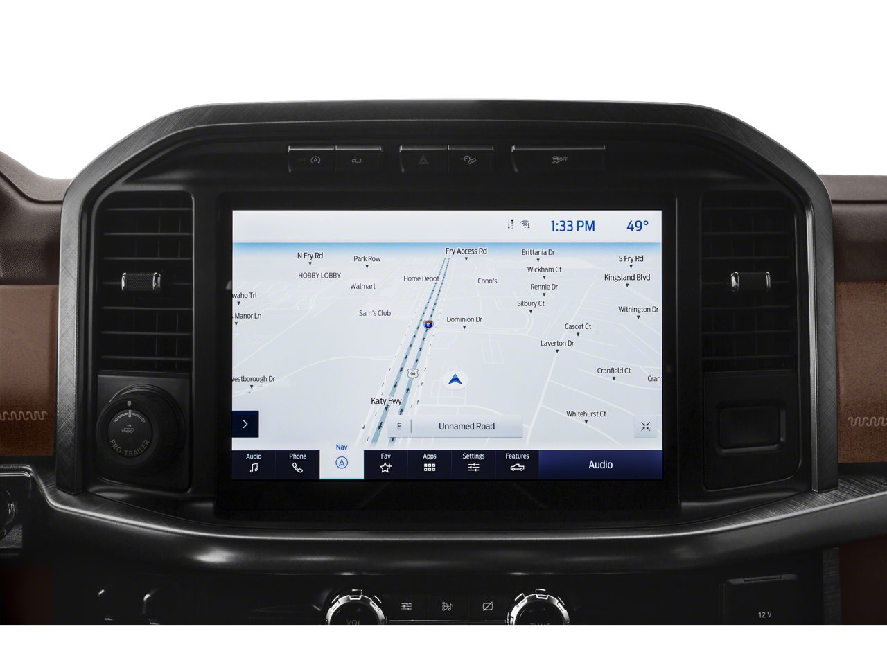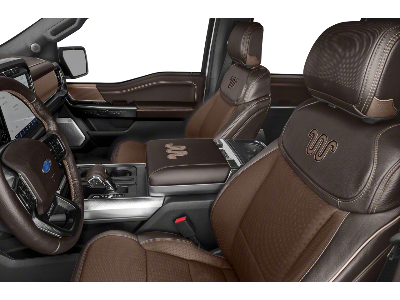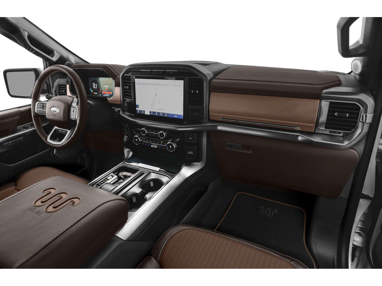 18 Machined-Aluminum Wheels, 20 Machined-Aluminum Wheels, 360 Degree Camera, 4-Wheel Disc Brakes, 4x4 FX4 Off-Road Bodyside Decal, 8 Speakers, ABS brakes, Adjustable pedals, Air Conditioning, Alloy wheels, AM/FM radio: SiriusXM with 360L, Auto High-beam Headlights, Auto Start-Stop Removal, Auto tilt-away steering wheel, Auto-dimming door mirrors, Auto-dimming Rear-View mirror, Automatic temperature control, Bed Utility Package, BoxLink, Brake assist, Class IV Trailer Hitch Receiver, Compass, Delay-off headlights, Driver door bin, Driver vanity mirror, Dual front impact airbags, Dual front side impact airbags, Electronic Stability Control, Emergency communication system: SYNC 4 911 Assist, Engine Block Heater, Equipment Group 601A High, Extended Range 36 Gallon Fuel Tank, Exterior Parking Camera Rear, Front anti-roll bar, Front Bucket Seats, Front Center Armrest, Front dual zone A/C, Front fog lights, Front reading lights, Front wheel independent suspension, Fully automatic headlights, FX4 Off-Road Package, Garage door transmitter, Genuine wood console insert, Genuine wood dashboard insert, Genuine wood door panel insert, Heated door mirrors, Heated front seats, Heated rear seats, Heated steering wheel, Hill Descent Control, Illuminated entry, Integrated Trailer Brake Controller, King Ranch Leather Bucket Seats, LED Box Lighting, LED Sideview Mirror Spotlights, Low tire pressure warning, Memory seat, Monotube Rear Shocks, Multi-Contour Driver & Passenger Seats, Multicontour Seats w/Active Motion Removal, Occupant sensing airbag, Off-Road Tuned Front Shock Absorbers, Outside temperature display, Overhead airbag, Overhead console, Panic alarm, Passenger door bin, Passenger vanity mirror, Pedal memory, Power door mirrors, Power driver seat, Power passenger seat, Power steering, Power Tailgate, Power windows, Power-Deployable Running Boards, Pro Trailer Backup Assist, Radio data system, Radio: B&O Sound System by Bang & Olufsen, Radio: B&O Unleashed Sound System by Bang & Olufsen, Rain sensing wipers, Rear reading lights, Rear seat center armrest, Rear step bumper, Rear window defroster, Remote keyless entry, Rock Crawl Mode, Security system, Speed control, Speed-sensing steering, Split folding rear seat, Steering wheel memory, Steering wheel mounted audio controls, SYNC 4 w/Enhanced Voice Recognition, Tachometer, Tailgate Step w/Tailgate Work Surface, Telescoping steering wheel, Tilt steering wheel, Tough Bed Spray-In Bedliner, Tow Technology Package, Traction control, Tray Style Floor Liner, Trip computer, Turn signal indicator mirrors, Twin Panel Moonroof, Variably intermittent wipers, Ventilated front seats, Voltmeter, Wheel Well Liner.