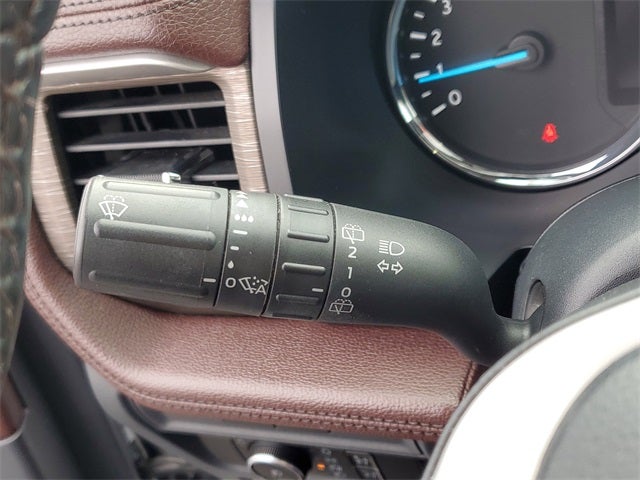 12 Speakers, 3.31 Axle Ratio, 3rd row seats: split-bench, 4-Wheel Disc Brakes, ABS brakes, Adjustable pedals, Air Conditioning, Alloy wheels, AM/FM radio: SiriusXM with 360L, Auto High-beam Headlights, Auto Start-Stop Removal (DISC), Auto-dimming door mirrors, Auto-dimming Rear-View mirror, Automatic temperature control, Brake assist, Bumpers: body-color, Compass, Delay-off headlights, Driver door bin, Driver vanity mirror, Dual front impact airbags, Dual front side impact airbags, Electronic Stability Control, Emergency communication system: SYNC 4 911 Assist, Equipment Group 301A Mid Package, Exterior Parking Camera Rear, Four wheel independent suspension, Front anti-roll bar, Front Bucket Seats, Front Center Armrest, Front dual zone A/C, Front fog lights, Front reading lights, Fully automatic headlights, Garage door transmitter, Heated & Ventilated Leather Front Captain's Chairs, Heated door mirrors, Heated front seats, Heated rear seats, Heated steering wheel, Illuminated entry, Leather steering wheel, Low tire pressure warning, Memory seat, Navigation system: Connected Navigation, Occupant sensing airbag, Outside temperature display, Overhead airbag, Overhead console, Panic alarm, Panoramic Vista Roof, Passenger door bin, Passenger vanity mirror, Pedal memory, Power door mirrors, Power driver seat, Power Liftgate, Power moonroof, Power passenger seat, Power steering, Power windows, Radio data system, Radio: B&O Sound System by Bang & Olufsen, Rain sensing wipers, Rear air conditioning, Rear anti-roll bar, Rear reading lights, Rear window defroster, Rear window wiper, Reclining 3rd row seat, Remote keyless entry, Second Row Power Windows Removal, Security system, SiriusXM w/360L, Speed control, Speed-sensing steering, Speed-Sensitive Wipers, Split folding rear seat, Spoiler, Steering wheel memory, Steering wheel mounted audio controls, SYNC 4 w/Enhanced Voice Recognition, Tachometer, Telescoping steering wheel, Tilt steering wheel, Traction control, Trip computer, Turn signal indicator mirrors, Variably intermittent wipers, Ventilated front seats, Voltmeter, Wheels: 20 Bright Machined Aluminum.