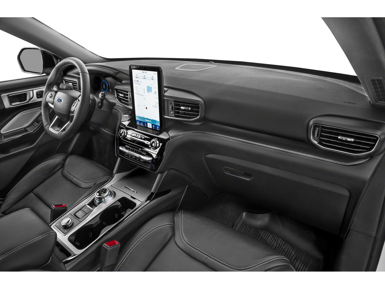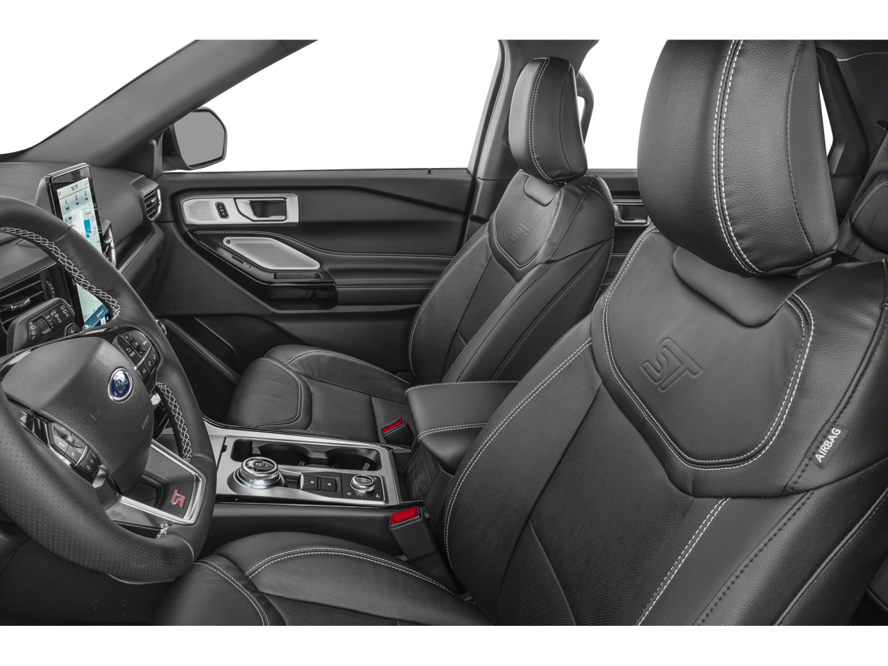 10.1 LCD Capacitive Portrait Touchscreen, 110V/150W AC Power Outlet, 2 Additional Speakers, 20 Machined Aluminum w/Painted Pockets Wheels, 3.58 Non-Limited-Slip Rear Axle Ratio, 360-Degree Camera w/Split View, 3rd row seats: bench, 4-Wheel Disc Brakes, 4G LTE Wi-Fi Hotspot Credit, 6 Speakers, ABS brakes, Air Conditioning, Alloy wheels, AM/FM radio: SiriusXM, AM/FM Stereo, Auto High-beam Headlights, Auto-Dimming Rearview Mirror (Interior), Automatic temperature control, Brake assist, Bumpers: body-color, Compass, Delay-off headlights, Driver door bin, Driver vanity mirror, Dual front impact airbags, Dual front side impact airbags, Electronic Stability Control, Emergency communication system: SYNC 3 911 Assist, Equipment Group 401A, Evasive Steering Assist, Exterior Parking Camera Rear, Ford Co-Pilot360 Assist+, FordPass Connect, Four wheel independent suspension, Front & Second Row Floor Liners (16B), Front anti-roll bar, Front Bucket Seats, Front Center Armrest, Front dual zone A/C, Front fog lights, Front Parking Sensors, Front Rain-Sensing Wipers, Front reading lights, Fully automatic headlights, Heated door mirrors, Heated front seats, Heated steering wheel, Illuminated entry, Intelligent Adaptive Cruise Control, Knee airbag, Leather Htd/Ventilated Sport Captain's Chairs, Leather steering wheel, Low tire pressure warning, Memory Driver's Seat, Memory seat, Occupant sensing airbag, Outside temperature display, Overhead airbag, Overhead console, Panic alarm, Passenger door bin, Passenger vanity mirror, Performance Front & Rear Brakes, Power door mirrors, Power driver seat, Power Liftgate, Power passenger seat, Power steering, Power Tilt/Telescoping Steering Column, Power windows, Radio: B&O Sound System by Bang & Olufsen, Rear air conditioning, Rear anti-roll bar, Rear reading lights, Rear window defroster, Rear window wiper, Remote keyless entry, Reverse Brake Assist, Second Row Heated Seats, Security system, SelectShift Capability w/Paddle Shifters, Sideview Mirrors w/Gloss Black Caps, Speed control, Speed Sign Recognition, Speed-sensing steering, Speed-Sensitive Wipers, Split folding rear seat, Spoiler, Sport steering wheel, ST High Package, ST Street Pack, Steering wheel mounted audio controls, SYNC 3 Communications & Entertainment System, SYNC 3/Apple CarPlay/Android Auto, Tachometer, Technology Package, Telescoping steering wheel, Third Row PowerFold (Folds Flat), Tilt steering wheel, Traction control, Trip computer, Twin Panel Moonroof, Universal Garage Door Opener (UGDO), Variably intermittent wipers, Ventilated front seats, Voice-Activated Touchscreen Navigation System, Wheels: 21 Aluminum, Wireless Charging Pad.