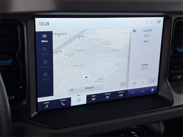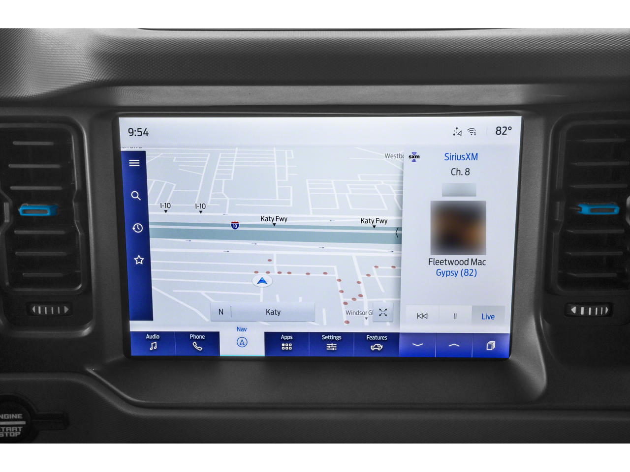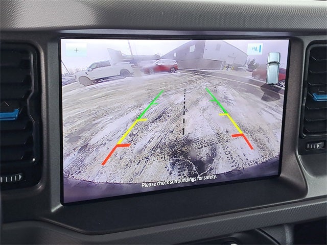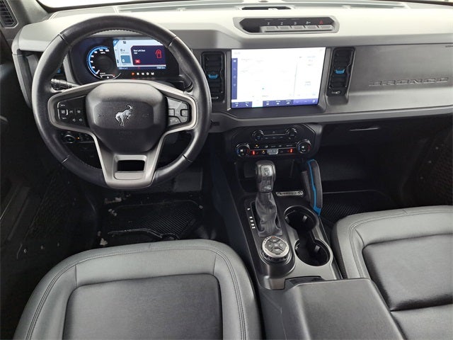 2-Door Intelligent Access w/Lock/Unlock, 4-Wheel Disc Brakes, 7 Speakers, ABS brakes, Air Conditioning, Alloy wheels, AM/FM radio: SiriusXM with 360L, AM/FM Stereo, Ambient Footwell Lighting, Auto High-Beam Headlamps, Auto High-beam Headlights, Auto-Dimming Interior Rear-View Mirror, BLIS Blind Spot Information System, Brake assist, Carbonized Gray Molded-In-Color Hard Top, Compass, Connected Navigation, Delay-off headlights, Dr & Pass Illuminated Sliding Visor Vanity Mirrors, Driver door bin, Driver vanity mirror, Dual front impact airbags, Dual front side impact airbags, Dual Smart Charging USB Ports, Dual-Zone Electronic Automatic Temperature Control, Electronic Stability Control, Emergency communication system: 911 Assist, Equipment Group 322A Mid Package, Exterior Parking Camera Rear, Front anti-roll bar, Front Bucket Seats, Front Center Armrest, Front reading lights, Front Row Heated Seats, Front Row Top Panels Storage Bag, Front wheel independent suspension, Fully automatic headlights, Hard Top Sound Deadening Headliner, Heated door mirrors, High Clearance Fender Flares, High Clearance Suspension, Illuminated entry, Integrated roll-over protection, Lane-Keeping System, Leather Shift Knob, Low tire pressure warning, Marine Grade Vinyl Bucket Seats, Occupant sensing airbag, Outside temperature display, Overhead airbag, Overhead console, Panic alarm, Passenger door bin, Passenger vanity mirror, Position-Sensitive Bilstein Shock Absorbers, Power door mirrors, Power Outlet - Back Side of Center Floor Console, Power steering, Power windows, Pre-Collision Assist w/Automatic Emergency Braking, Radio data system, Rear Parking Sensors, Rear-View Camera, Rear-Window Defroster & Washer, Remote keyless entry, Remote Start System, Sasquatch Package, Security system, SiriusXM Radio w/360L, Speed control, Split folding rear seat, Steering wheel mounted audio controls, SYNC 4, Tachometer, Telescoping steering wheel, Tilt steering wheel, Traction control, Trip computer, Variably intermittent wipers, Wheels: 17 Black High Gloss-Painted Aluminum, Wheels: 17 Black High Gloss-Painted Aluminum (765).