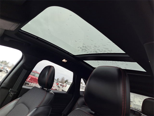 3.81 Axle Ratio, 4-Wheel Disc Brakes, 6 Speakers, ABS brakes, Adaptive Cruise Control w/Stop-and-Go, Air Conditioning, Alloy wheels, AM/FM radio: SiriusXM, AM/FM Stereo, Auto High-beam Headlights, Automatic temperature control, Black Roof-Rack Side Rails, Brake assist, Bumpers: body-color, Cold Weather Package, Compass, Connected Navigation, Delay-off headlights, Driver door bin, Driver vanity mirror, Dual front impact airbags, Dual front side impact airbags, Electronic Stability Control, Emergency communication system: SYNC 4 911 Assist, Equipment Group 300A, Exterior Parking Camera Rear, Ford Co-Pilot360 Assist+, FordPass Connect, Four wheel independent suspension, Front anti-roll bar, Front Bucket Seats, Front Center Armrest, Front dual zone A/C, Front reading lights, Fully automatic headlights, Heated Front Row Seats, Heated Sideview Mirrors, Heated Steering Wheel, Illuminated entry, Knee airbag, Low tire pressure warning, Occupant sensing airbag, Outside temperature display, Overhead airbag, Overhead console, Panic alarm, Panoramic Vista Roof, Passenger door bin, Passenger vanity mirror, Power door mirrors, Power driver seat, Power Liftgate, Power steering, Power windows, Radio data system, Rear anti-roll bar, Rear Parking Sensor, Rear reading lights, Rear seat center armrest, Rear window defroster, Rear window wiper, Rear-View Camera, Remote keyless entry, Remote Starter System, Roof rack: rails only, Speed control, Speed Sign Recognition, Speed-sensing steering, Speed-Sensitive Wipers, Split folding rear seat, Spoiler, Sport steering wheel, Steering wheel mounted audio controls, SYNC 4, SYNC 4 w/Enhanced Voice Recognition, Tachometer, Tech Pack #1, Telescoping steering wheel, Tilt steering wheel, Traction control, Trip computer, Variably intermittent wipers, Vinyl/Cloth Front Sport Contour Bucket Seats, Wheels: 18 Rock Metallic Painted Aluminum.