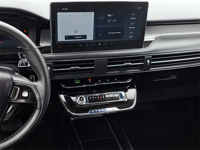 18 Bright Machined Aluminum Wheels, 19 Bright Machined Aluminum Wheels, 2 Additional USB Ports in Rear of Center Console, 3.81 Axle Ratio, 360-Degree Camera, 4-Wheel Disc Brakes, 60/40 EasyFold Rear Seat w/Power Seatback Release, 9 Speakers, ABS brakes, Air Conditioning, Alexa Built-In, All-Weather Floor Liners, Alloy wheels, AM/FM radio: SiriusXM, Apple CarPlay/Android Auto, Auto High-beam Headlights, Auto-dimming Rear-View mirror, Automatic temperature control, Brake assist, Bumpers: body-color, Compass, Delay-off headlights, Driver door bin, Driver vanity mirror, Dual front impact airbags, Dual front side impact airbags, Electronic Stability Control, Emergency communication system: 911 Assist, Equipment Group 101A, Four wheel independent suspension, Frameless Auto Dimming Rearview Mirror, Front anti-roll bar, Front Bucket Seats, Front Center Armrest, Front dual zone A/C, Front reading lights, Front/Side/Rear Parking Sensors, Fully automatic headlights, Hands-Free Liftgate, Heated door mirrors, Heated front seats, Heated Sideview Mirrors, Heated Steering Wheel, Heated/Ventilated Driver & Front Passenger Seats, Illuminated entry, Knee airbag, Lane Departure Warning System, Leather steering wheel, Lincoln Soft Touch Heated Front Captain's Chairs, Low tire pressure warning, Memory seat, Micro-Perf Lincoln Soft Touch Captain's Chairs, Navigation system: Connected Navigation (3-year trial), Occupant sensing airbag, Outside temperature display, Overhead airbag, Overhead console, Panic alarm, Panoramic Vista Roof w/Power Shade, Passenger door bin, Passenger vanity mirror, Phone As A Key (PAAK), Power door mirrors, Power driver seat, Power Liftgate, Power passenger seat, Power steering, Power Tilt/Telescoping Steering Column w/Memory, Power windows, Radio data system, Radio: Lincoln Premium Audio System w/MP3, Rain Sensing Wipers, Rear anti-roll bar, Rear Parking Sensors, Rear reading lights, Rear Removable Package Tray, Rear seat center armrest, Rear window defroster, Rear window wiper, Remote keyless entry, Reverse Brake Assist, Security system, SiriusXM Radio, Speed control, Speed-sensing steering, Speed-Sensitive Wipers, Split folding rear seat, Spoiler, Steering wheel mounted A/C controls, Steering wheel mounted audio controls, SYNC 4 Communications & Entertainment System, Tachometer, Telescoping steering wheel, Tilt steering wheel, Traction control, Trip computer, Universal Garage Door Opener, Variably intermittent wipers, Wheels: 18 Warm Painted Alloy, Windshield Wiper D