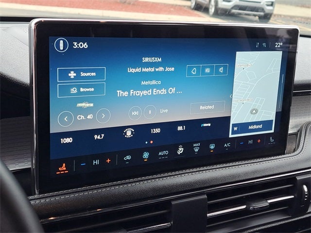 18 Bright Machined Aluminum Wheels, 4-Wheel Disc Brakes, 9 Speakers, ABS brakes, Air Conditioning, Alexa Built-In, All-Weather Floor Liners, Alloy wheels, AM/FM radio: SiriusXM with 360L, Apple CarPlay/Android Auto, Auto High-beam Headlights, Auto-dimming Rear-View mirror, Automatic temperature control, Brake assist, Bumpers: body-color, Compass, Delay-off headlights, Driver door bin, Driver vanity mirror, Dual front impact airbags, Dual front side impact airbags, Electronic Stability Control, Emergency communication system: 911 Assist, Equipment Group 100A, Exterior Parking Camera Rear, Four wheel independent suspension, Front anti-roll bar, Front Bucket Seats, Front Center Armrest, Front dual zone A/C, Front reading lights, Fully automatic headlights, Heated door mirrors, Heated front seats, Illuminated entry, Knee airbag, Leather steering wheel, Lincoln Soft Touch Heated Front Captain's Chairs, Low tire pressure warning, Memory seat, Navigation system: Connected Navigation (4-year trial), Occupant sensing airbag, Outside temperature display, Overhead airbag, Overhead console, Panic alarm, Passenger door bin, Passenger vanity mirror, Power door mirrors, Power driver seat, Power Liftgate, Power passenger seat, Power steering, Power windows, Radio data system, Radio: Lincoln Premium Audio System w/MP3, Rear anti-roll bar, Rear Parking Sensors, Rear reading lights, Rear seat center armrest, Rear window defroster, Rear window wiper, Remote keyless entry, Security system, SiriusXM w/360L Radio, Speed control, Speed-sensing steering, Speed-Sensitive Wipers, Split folding rear seat, Spoiler, Steering wheel mounted A/C controls, Steering wheel mounted audio controls, SYNC 4 Communications & Entertainment System, Tachometer, Telescoping steering wheel, Tilt steering wheel, Towing Package, Traction control, Trip computer, Variably intermittent wipers, Wheels: 18 Warm Painted Alloy.
